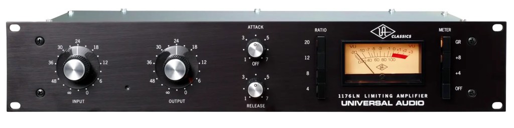 Le compresseur FET le plus populaire de tous les temps est l’1176 Limiting Amplifier, qui a été initialement lancé à la fin des années 1960. Il est connu pour ajouter un caractère très recherché à tout signal, souvent décrit comme brillant, présent et rugueux lorsqu’il est poussé. Le fameux mode « all buttons in » — qui consiste à appuyer littéralement sur tous les boutons de ratio — transforme pratiquement l’appareil en une boîte de saturation (idéale pour une compression parallèle super agressive !).